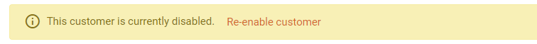 The customer can be re-enabled at any time, simply 'Edit' the customer record again and click the 'Re-enable Customer' link at the top of the page.